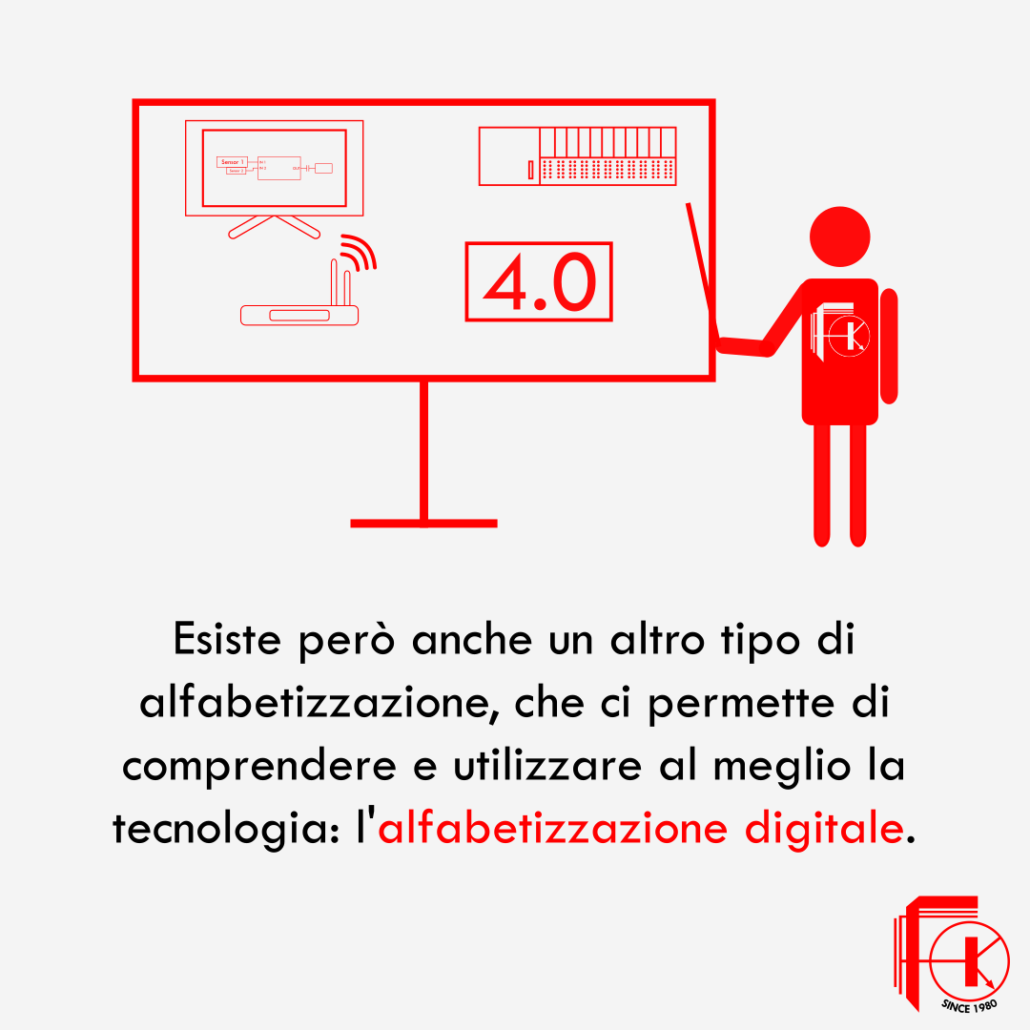Abbiamo già parlato di come il concetto di Industria 4.0 sta cambiando. Ciò che non abbiamo mai specificato, però, è che questo cambio di rotta sia dettato dall’alfabetizzazione digitale. Infatti, che senso ha avere macchinari e impianti ultra tecnologici e digitali, se il mio personale di linea non sa nemmeno da dove si accendono? Oltre ad imparare ad usare i nuovi impianti sempre più digitali, gli operai e i responsabili di linea devono anche sapere di cosa stanno parlando i tecnici che hanno lavorato al software dell’impianto e che dovranno spiegare agli operatori di linea cosa aveva causato quello specifico problema, usando termini tecnici per descrivere con la massima precisione quanto accaduto. La formazione all’uso di piattaforme digitali si estende anche al personale aziendale che normalmente troveremmo in ufficio. Tecnici, commerciali, ragionieri e manager devono essere tanto abili nel capire i segnali che software MES, SCADA e macchinari si scambiano, tanto quanto il personale di linea.